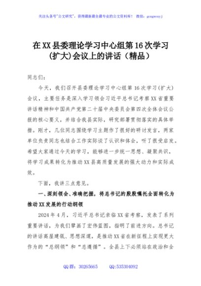 / 在XX县委理论学习中心组第16次学习(扩大)会议上的讲话(精品)