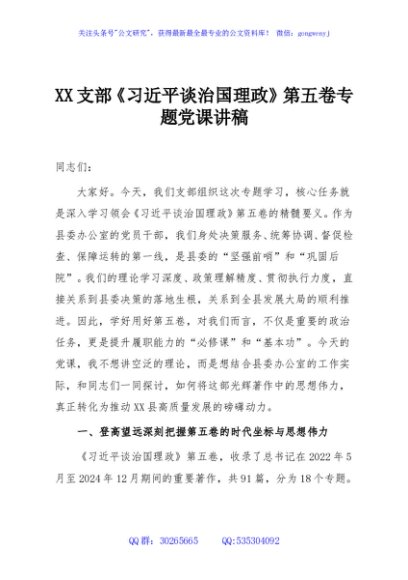 / XX支部《习近平谈治国理政》第五卷专题党课讲稿