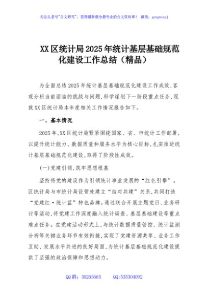 / XX区统计局2025年统计基层基础规范化建设工作总结(精品)