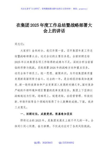 / 在集团2025年度工作总结暨战略部署大会上的讲话