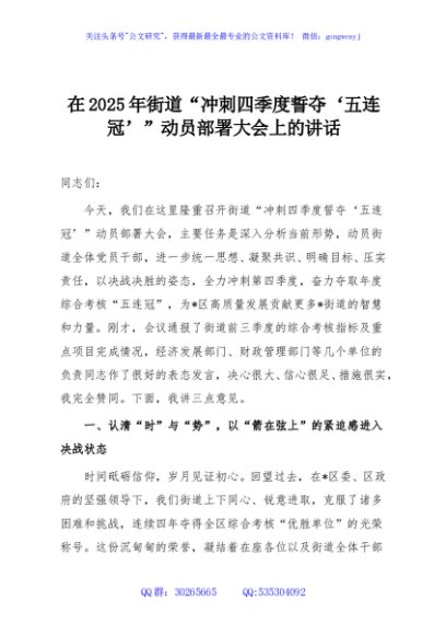 / 在2025年街道“冲刺四季度誓夺‘五连冠’”动员部署大会上的讲话