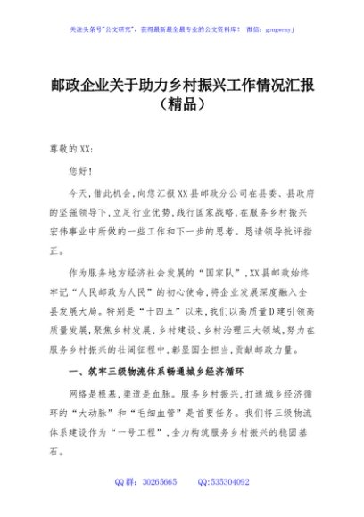/ 邮政企业关于助力乡村振兴工作情况汇报(精品)