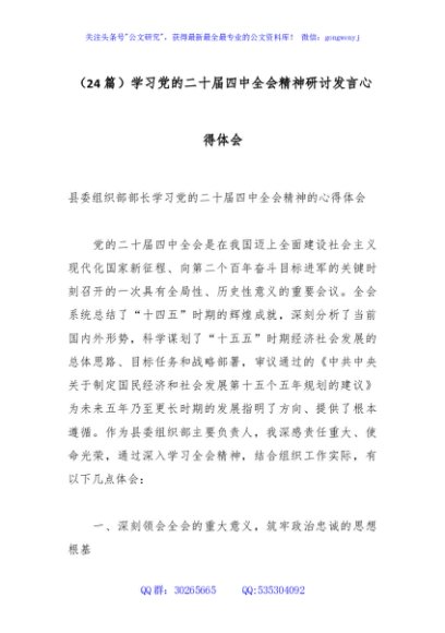 / (24篇)学习党的二十届四中全会精神研讨发言心得体会