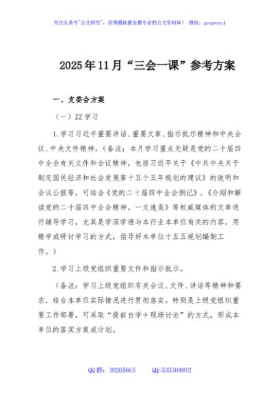 / 2025年11月“三会一课”参考方案
