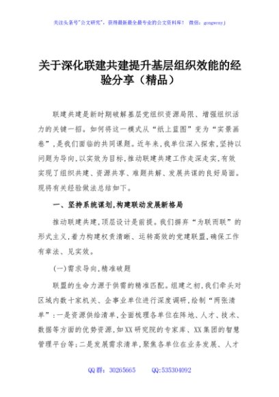 / 关于深化联建共建提升基层组织效能的经验分享(精品)