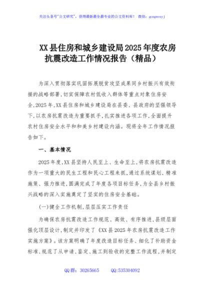 / XX县住房和城乡建设局2025年度农房抗震改造工作情况报告(精品)