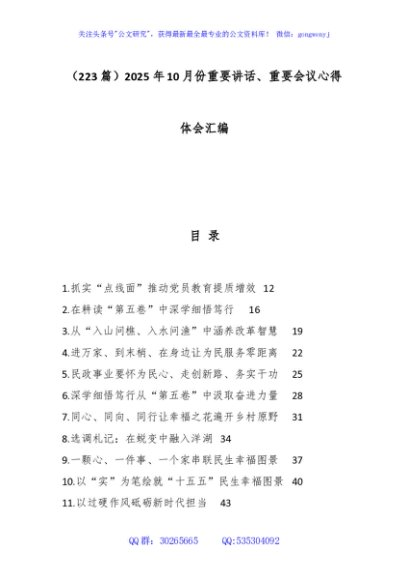 / (223篇)2025年10月份重要讲话、重要会议心得体会汇编