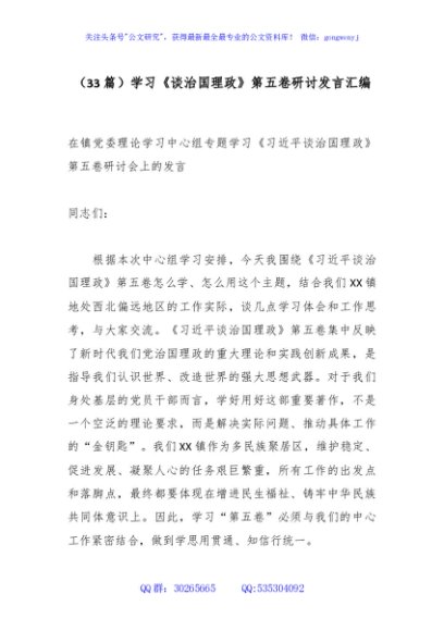 / (33篇)学习《谈治国理政》第五卷研讨发言汇编