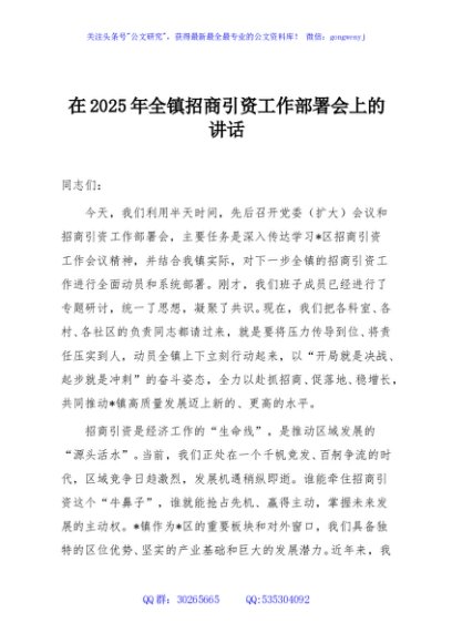 / 在2025年全镇招商引资工作部署会上的讲话
