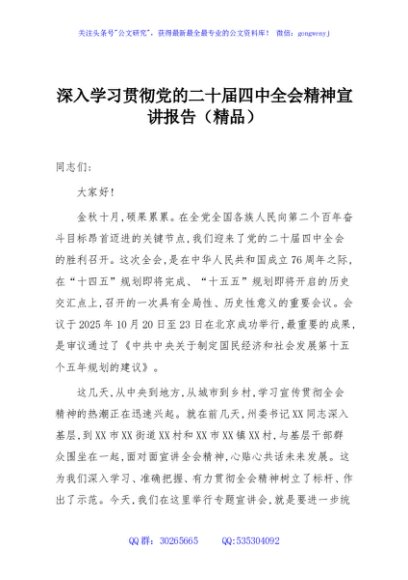 / 深入学习贯彻党的二十届四中全会精神宣讲报告(精品)