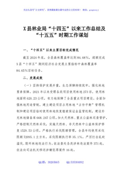 / X县林业局“十四五”以来工作总结及“十五五”时期工作谋划
