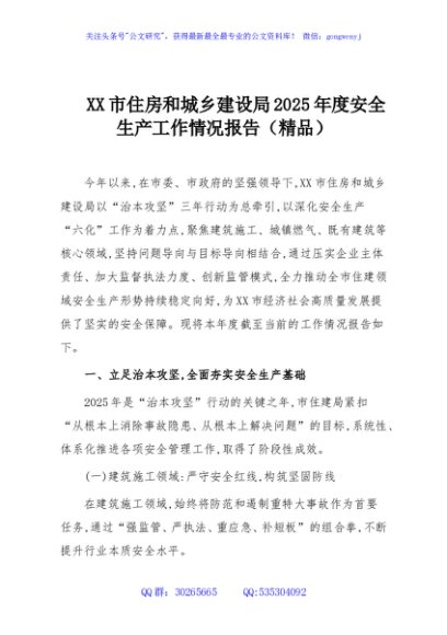 / XX市住房和城乡建设局2025年度安全生产工作情况报告(精品)
