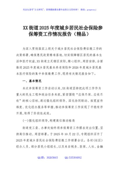 / XX街道2025年度城乡居民社会保险参保筹资工作情况报告(精品)