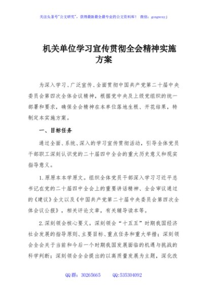 / 机关单位学习宣传贯彻全会精神实施方案