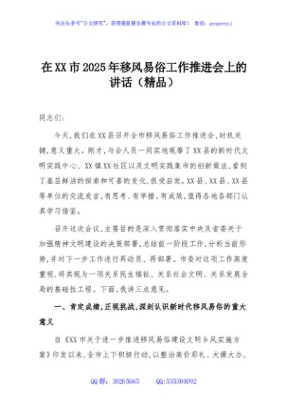 / 在XX市2025年移风易俗工作推进会上的讲话(精品)