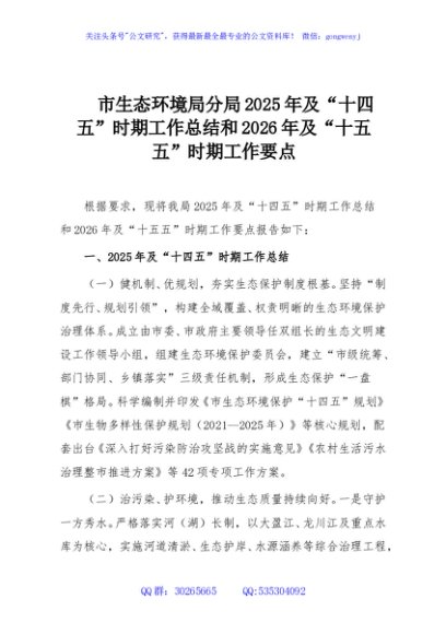 / 市生态环境局分局2025年及“十四五”时期工作总结和2026年及“十五五”时期工作要点