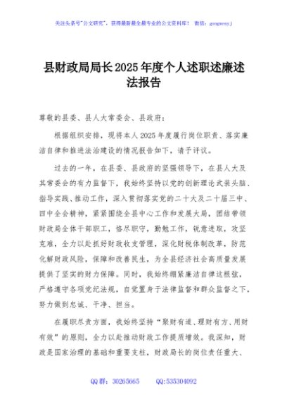 / 县财政局局长2025年度个人述职述廉述法报告