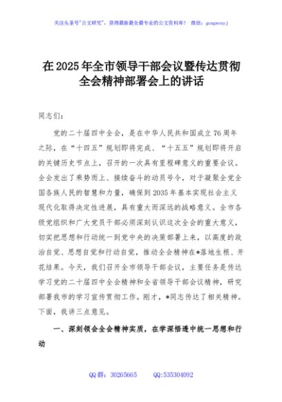 / 在2025年全市领导干部会议暨传达贯彻全会精神部署会上的讲话