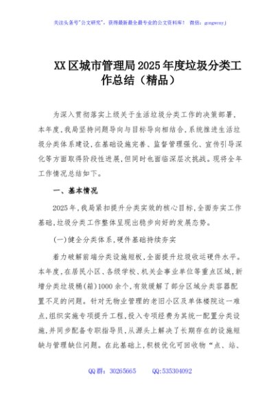/ XX区城市管理局2025年度垃圾分类工作总结(精品)