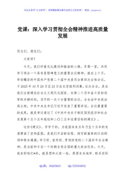 / 党课:深入学习贯彻全会精神推进高质量发展