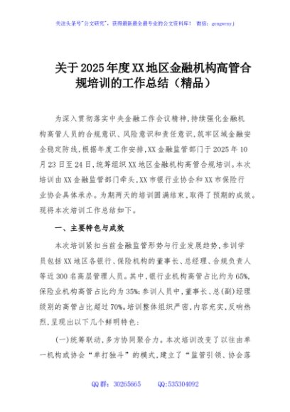 / 关于2025年度XX地区金融机构高管合规培训的工作总结(精品)