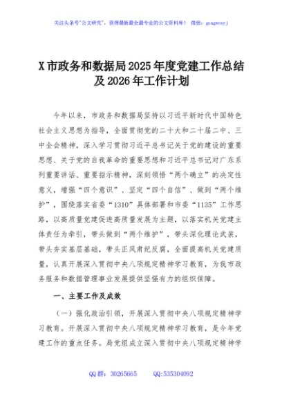 / X市政务和数据局2025年度党建工作总结及2026年工作计划