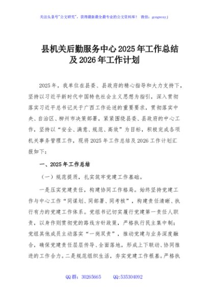 / 县机关后勤服务中心2025年工作总结及2026年工作计划