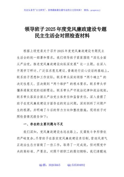 / 领导班子2025年度党风廉政建设专题民主生活会对照检查材料