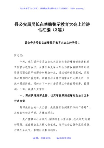 / 县公安局局长在禁赌警示教育大会上的讲话汇编(2篇)