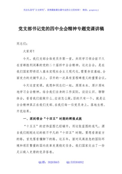 / 党支部书记党的四中全会精神专题党课讲稿