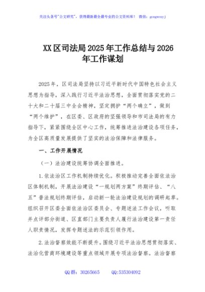 / XX区司法局2025年工作总结与2026年工作谋划