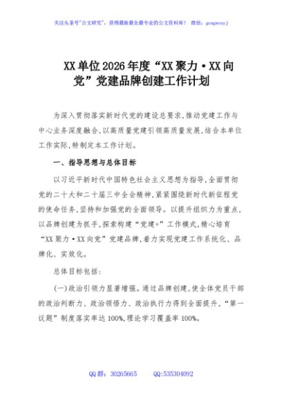 / XX单位2026年度“XX聚力·XX向党”党建品牌创建工作计划