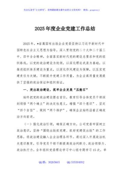 / 2025年度企业党建工作总结