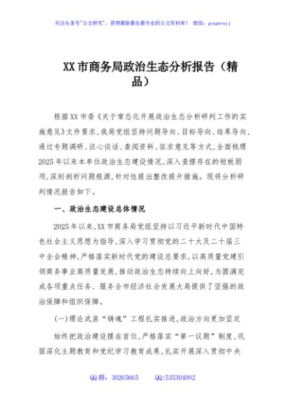 / XX市商务局政治生态分析报告(精品)