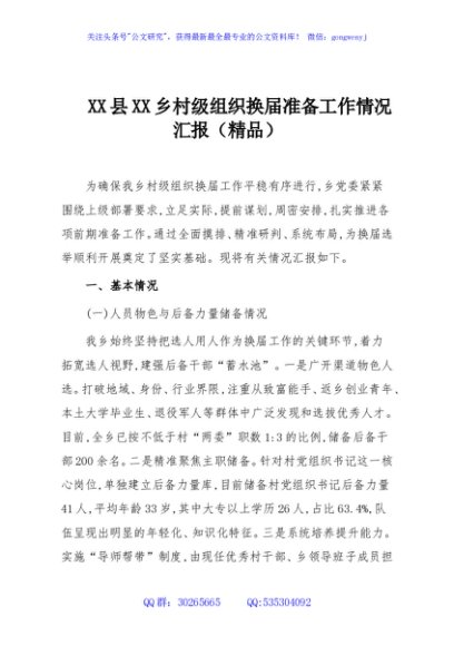 XX县XX乡村级组织换届准备工作情况汇报(精品)
