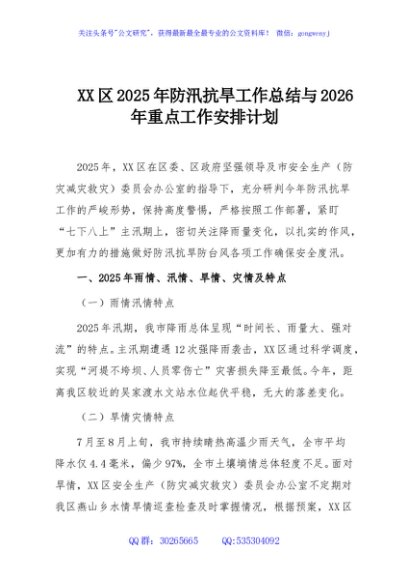 / XX区2025年防汛抗旱工作总结与2026年重点工作安排计划