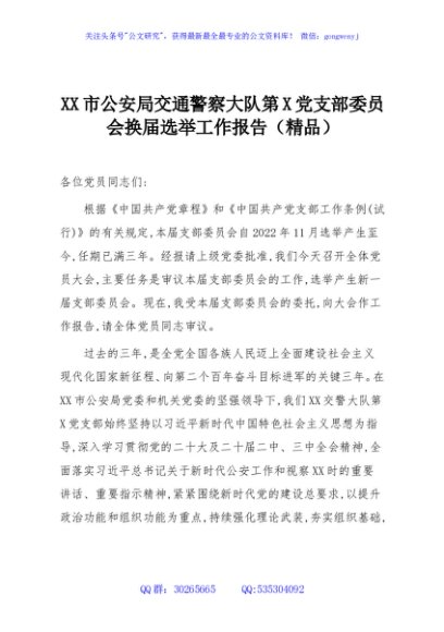 / XX市公安局交通警察大队第X党支部委员会换届选举工作报告(精品)
