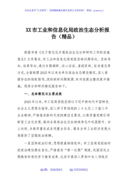 / XX市工业和信息化局政治生态分析报告(精品)