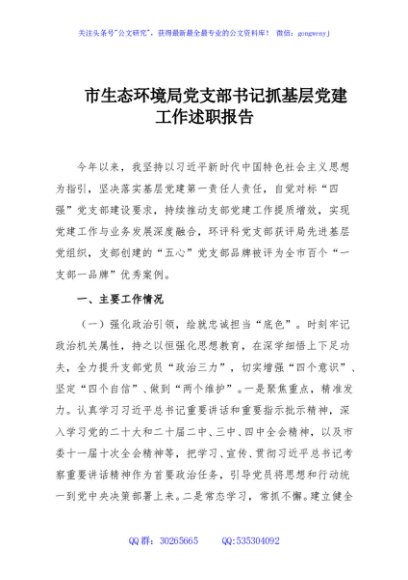 / 市生态环境局党支部书记抓基层党建工作述职报告