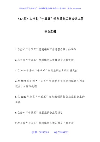 / (37篇)在市县“十五五”规划编制工作会议上的讲话汇编