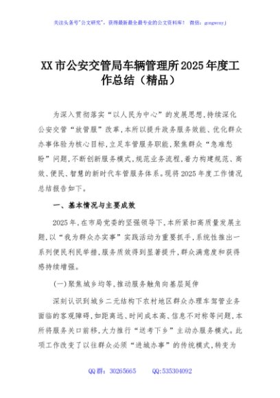 / XX市公安交管局车辆管理所2025年度工作总结(精品)