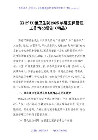 / XX市XX镇卫生院2025年度医保管理工作情况报告(精品)