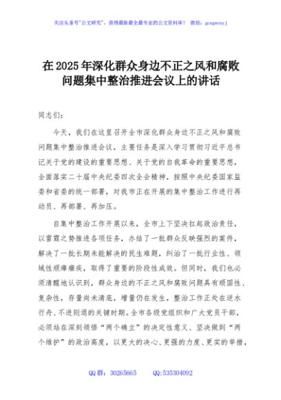 / 在2025年深化群众身边不正之风和腐败问题集中整治推进会议上的讲话