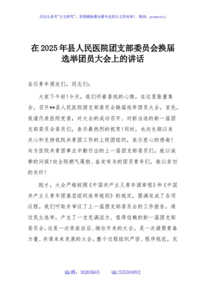 / 在2025年县人民医院团支部委员会换届选举团员大会上的讲话