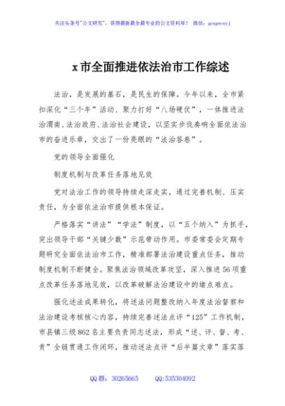 / x市全面推进依法治市工作综述