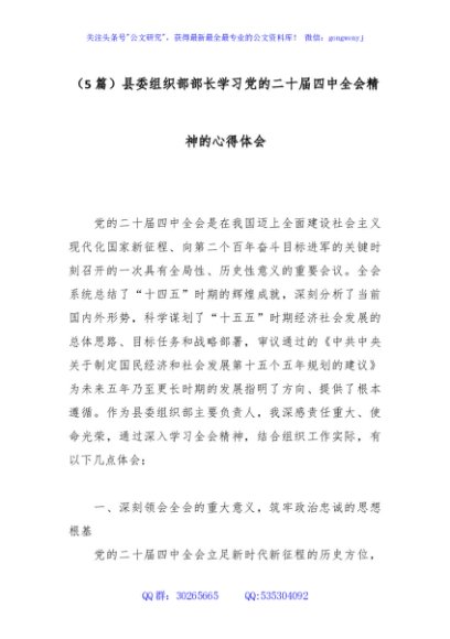 / (5篇)县委组织部部长学习党的二十届四中全会精神的心得体会