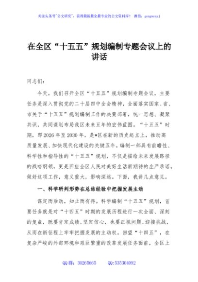 / 在全区“十五五”规划编制专题会议上的讲话