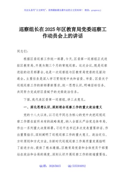 / 巡察组长在2025年区教育局党委巡察工作动员会上的讲话