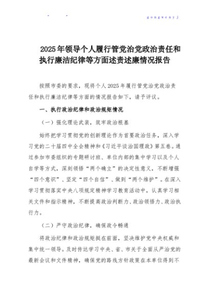 / 2025年领导个人履行管党治党政治责任和执行廉洁纪律等方面述责述廉情况报告