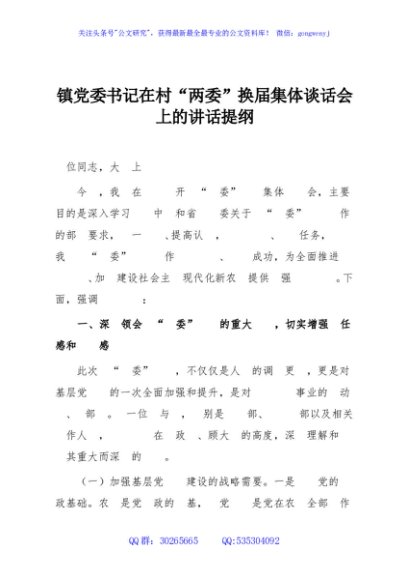 / 镇党委书记在村“两委”换届集体谈话会上的讲话提纲